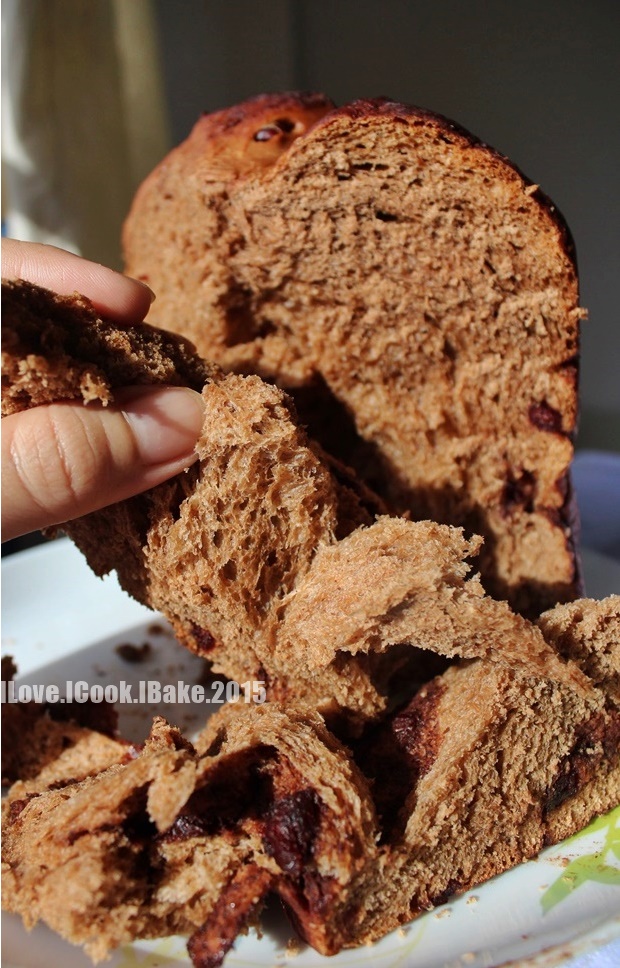 This impatient me cut the cake while it's still quite warm, hence the messy cut :)